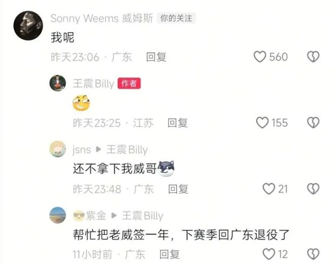 同曦男篮已经和广东男篮旧将黄荣奇完成了签约,球队总经理王震在社交媒体上晒出了和黄荣奇的签约过程。这该视频下面,广东男篮功勋外援威姆斯在线求职,询问王震:“我呢?”下面有不少球迷跟帖,表示希望王震能够再签下威姆斯。